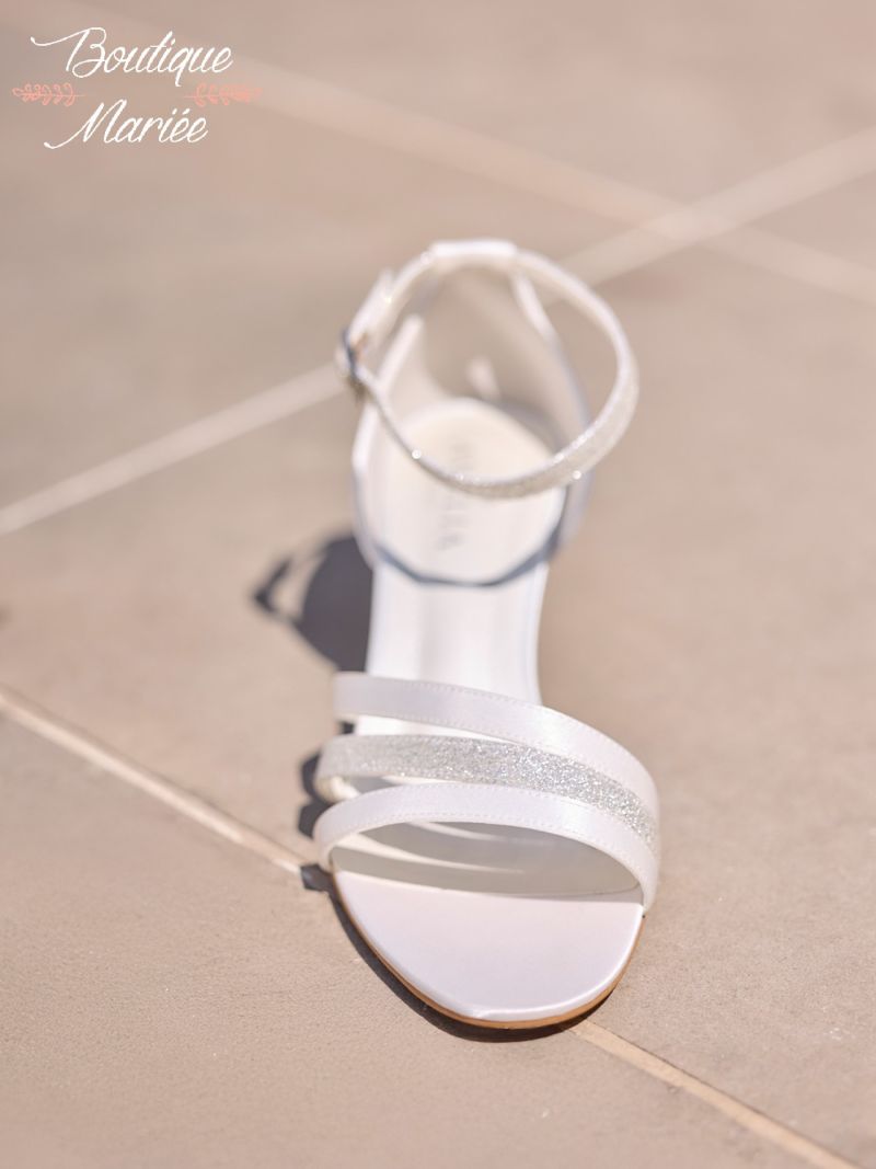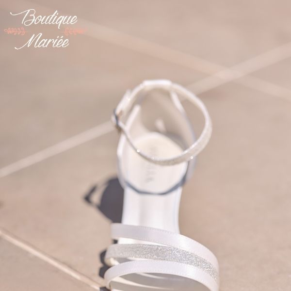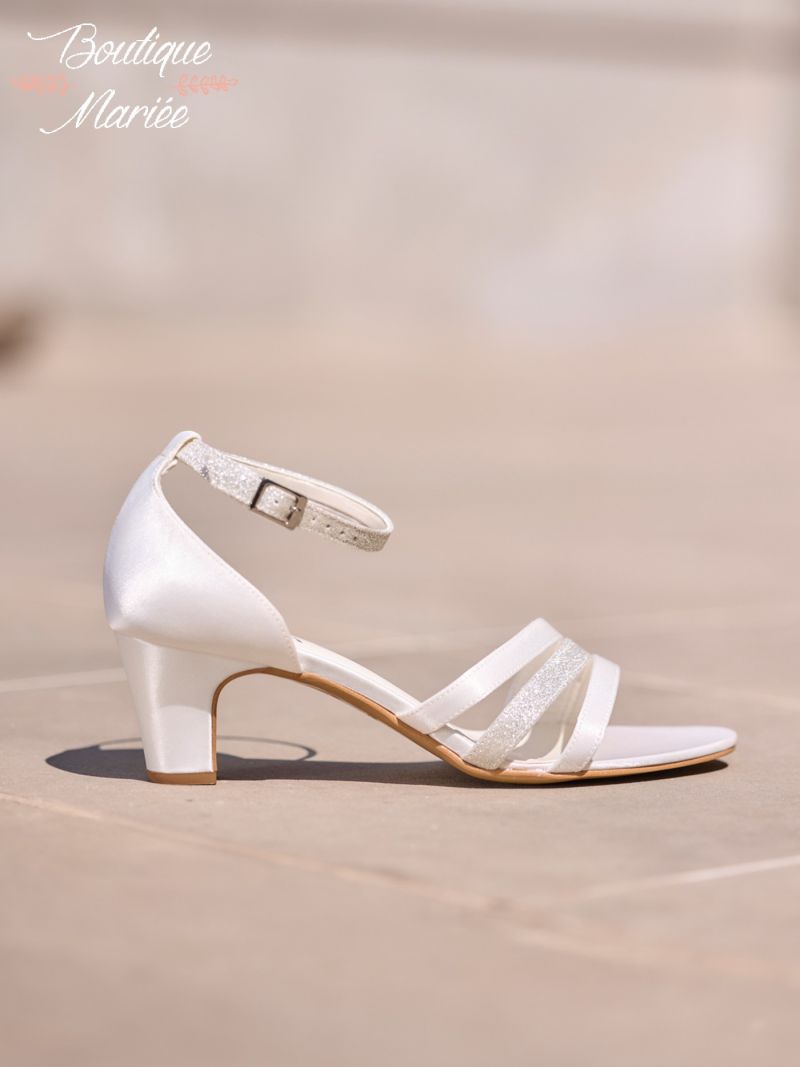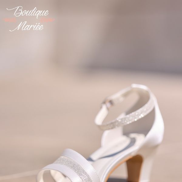 WILLOW est une sandale de mariée exquise, confectionnée en satin raffiné, couleur ivoire et or. Les brides scintillantes font ressortir l’élégance de la chaussure de mariée. Elle est dotée d’un talon de 6 cm. La fine bride de fermeture assure un maintien sécurisé et un confort optimal durant le mariage. Présentées au magasin en taille 38, mais peuvent être commandées dans d'autres tailles.